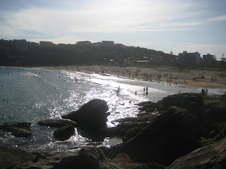 We then drove towards the beach, to Freshwater Beach. We had been meaning to go there as everyone raves about it. It was good. Not too crowded, gentle waves, it was a very enjoyable few hours. We had a picnic lunch and took a walk around the rocks.