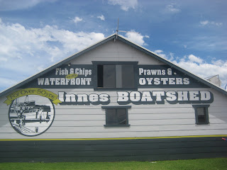 Very very yummy fish and chips and fresh prawns from the Boatshed!