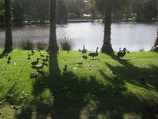 Our first stop was to Bateman's Bay - a four hour drive from Sydney down the South Coast. Bateman's Bay is popular with both Canberrans and Sydneysiders. We spent four night at the Bateman's Bay Big4 Beach Resort. We got a great deal for the spanking new two bedroom cabin as it was still 'low-season'. It would have tripled in cost if we were travelling during the school holidays!! Our cabin, named Wattle, was right by Joe's Creek. It was very relaxing with the river, the wind, the trees, and the ducks.