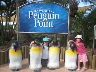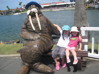 The Gold Coast is a theme park heaven for children. There are lots of worlds - seaworld, dreamworld, movieworld, wet and wild, etc. Fergus and I could cope with only one so we decided on Seaworld. $240 later!! The girls loved it though. The smiles on their faces was worth every cent!