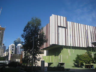 We spent three nights in Brisbane. It's a smallish city and reminds us of Vancouver. We headed to the South Bank area for the day. The main galleries, museum, state library, man made beach and water park is all located in the area. The State Library of Queensland had activities for the kids with a cowboy theme. The girls loved making their cowboy hats, vests, belt, scarf and line-dancing.