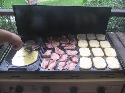 Nic with the eggs; the kids collected dozens of fresh eggs every morning.