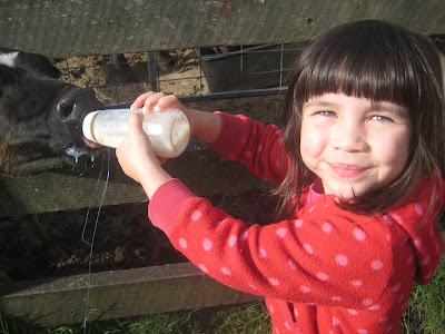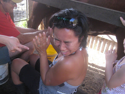 Eww Margot has been slimed by the cow's long thick black tongue!