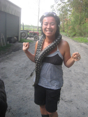 Last weekend we went to a farm stay in a suburb of Port Stephens called Bob's Farm (about a 2 and a half hour drive from our house). We went up there with Vic, Mars, Kat and Nic and Dee, Adam, Ethan, and Flinn. It was a blast and a definite highlight of the year! We stayed at Kookaburra's Cottage. Scott and Louise are super nice and every day at 5pm, Scott took us around the farm to feed the animals, help him with jobs, etc. The weather could have been better though. We had one hot day and one super cold day!