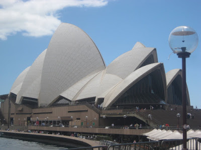 The Opera House is designed by Danish architect Jorn Utzon, who funny enough passed away yesterday at age 90 from a heart attack. He won the international bid for the project but did not ever set foot on the finished project; he was 1400% off on his project timelines and estimated dollars and ultimately forced to resign before the building was completed!