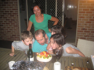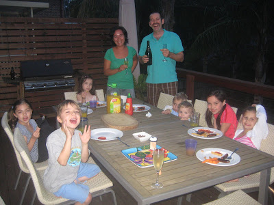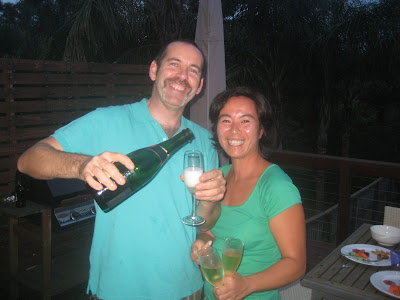 We invited Tony/Egidia and Mario/Vic over for some Moet, steak, Bolivian potatoes, mango salad, pavlova on Wednesday evening. Great company and a great evening! We love you Fergus!!